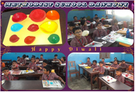 colorful rangolis. Our pre-primary students enjoyed making beautiful diyas and